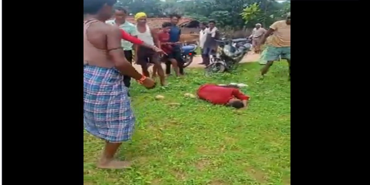 मार खा रहे दोनों युवक पर आरोप है कि वे बकरी चोरी कर रहे थे, पकड़े गए तो ग्रामीणों ने बेदम मारा।