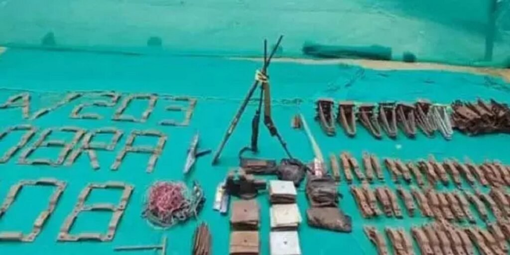बरामदगी के दौरान जवानों को नक्सलियों के डंप से भारी मात्रा में हथियार और विस्फोटक सामग्री मिली है. इसमें कंट्रीमेड रायफल, बीजीएल लांचर और उसका बैरल, यूएवी नेत्रा का टूटा हुआ प्रोपेलर, इलेक्ट्रिक होल्डर वेल्डिंग, बैंच वाइस और स्टील पाइप शामिल है. इसके अलावा 7 लोहे के छड़, करीब 2 किलो वजनी 45 लोहे के बेस प्लेट, 8 किलो के 47 पोल एंगलर और लगभग 480 भारी-भरकम आयरन क्लैंप बरामद किए गए. वहीं 35 ग्राउंड सपोर्टर, 1 किलो, 18 और 12 इंच के दर्जनों क्लैंप, एक टी-टाइप क्लैंप, काला वर्दी, एम्युनेशन पाउच और टूटी हुई इन्वर्टर बैटरी भी मिली. मौके से करीब 20 मीटर इलेक्ट्रिक वायर और एक इलेक्ट्रिकल एक्सटेंशन बोर्ड भी जब्त किया गया.